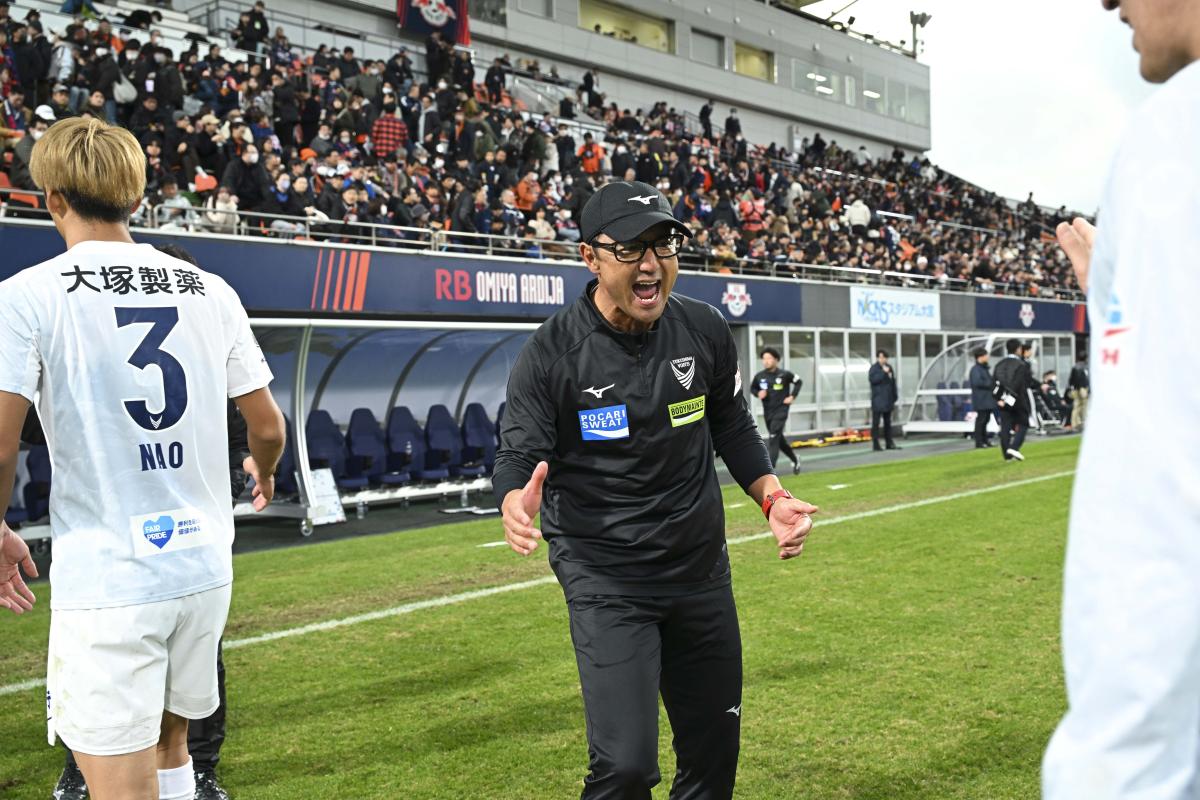 今日出ていた選手、それからパワープレーヤーとして途中からパワーを入れてくれた選手たち、そして徳島へ残っている自分たちのファミリーやここへ入れなかった選手たちが日ごろのトレーニングでハードワークして、チームのエンブレムのためにプライドを持ってやってくれた結果、今日のアウェイの難しい試合で勝利に持っていく事ができたと思います。